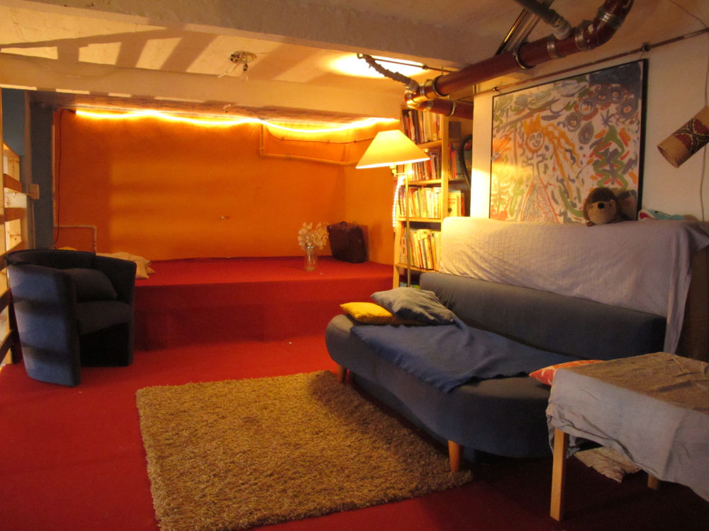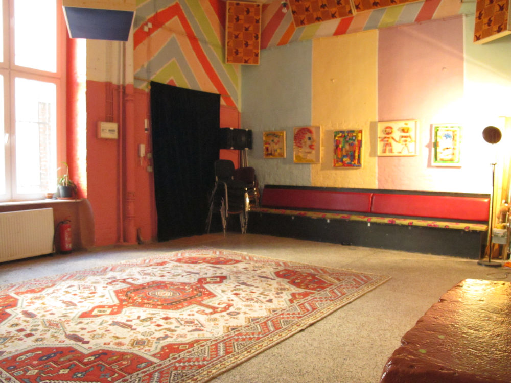 Wir vermieten den Vereinsraum in der Sprengelstraße 15, 13353 Berlin, 2. Hinterhof EG rechts an Vereinsmitglieder, sowie an Externe. Der wunderschöne, ehemalige Malsaal besteht aus einem unteren „Mutlifunktionsraum“ mit Küche, Bar und Toilette. Tische, Stühle, sowie Sportmatten sind vorhanden. Weiterhin verfügt der Raum über eine Galerie, die über eine Treppe, die sich dem Raum öffnet, zu erreichen ist. Hier ist eine Lounge mit Matratzen und Sofas eingerichtet. Eine kleine Kinderbuchecke lädt zum Vorlesen ein!